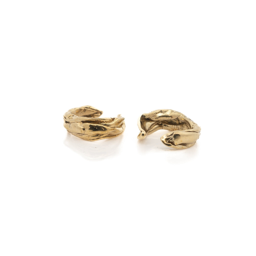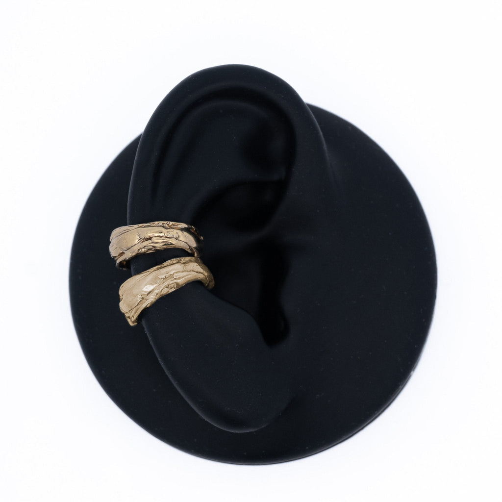 Our Arches Gold Ear Cuff is a striking organic design that captures the rugged beauty of nature. Created from an original wax carving and cast in recycled brass, this ear cuff embodies sustainability and artisanal craftsmanship.