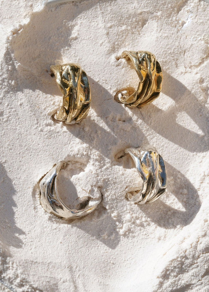 Lightweight and textured, the Arches Ear Cuff offers a versatile and stylish accessory that requires no piercing. Its design, inspired by nature's raw elegance, makes it a perfect piece to wear solo or stacked or paired with other earrings for an edgy but refined look. Also available in golden brass for a mixed metals look.