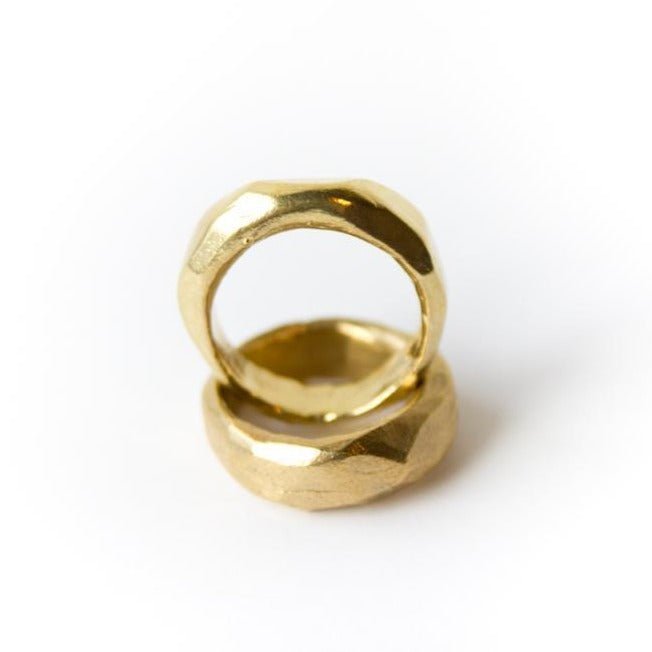 An enduring classic and one of our first ring designs we ever created. The organic, faceted nature of the ring makes for a very wabi-sabi feeling. Great for stacking and layering. A Dea Dia classic and best seller. We like to pair it with the Little Butte Ring as pictured. 14k Gold Big Butte Ring makes for an excellent alternative wedding band.