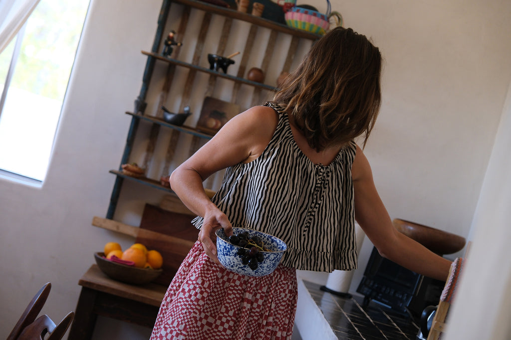 Our fabrics are crafted from natural materials, including 100% hand-woven cotton, linen, wool, and silk. We use traditional techniques carried out by skilled artisans. The processes of hand-weaving, hand-dyeing, and hand-block printing are prone to slight irregularities, which make each piece one-of-a-kind.