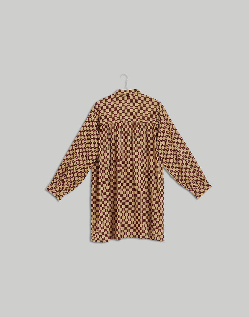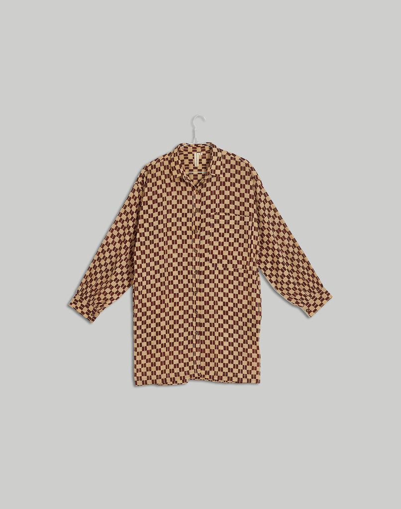 Created in collaboration with Erica and Dee Dee, this timeless checkerboard-print jacket is a comfortable and chic layering piece. It has a relaxed, flowing design with a classic collar, full-length sleeves with gathered cuffs, and a front pocket. For a casual look, wear it open over a basic tee and jeans, or dress it up by pairing it with tailored trousers or a simple dress.