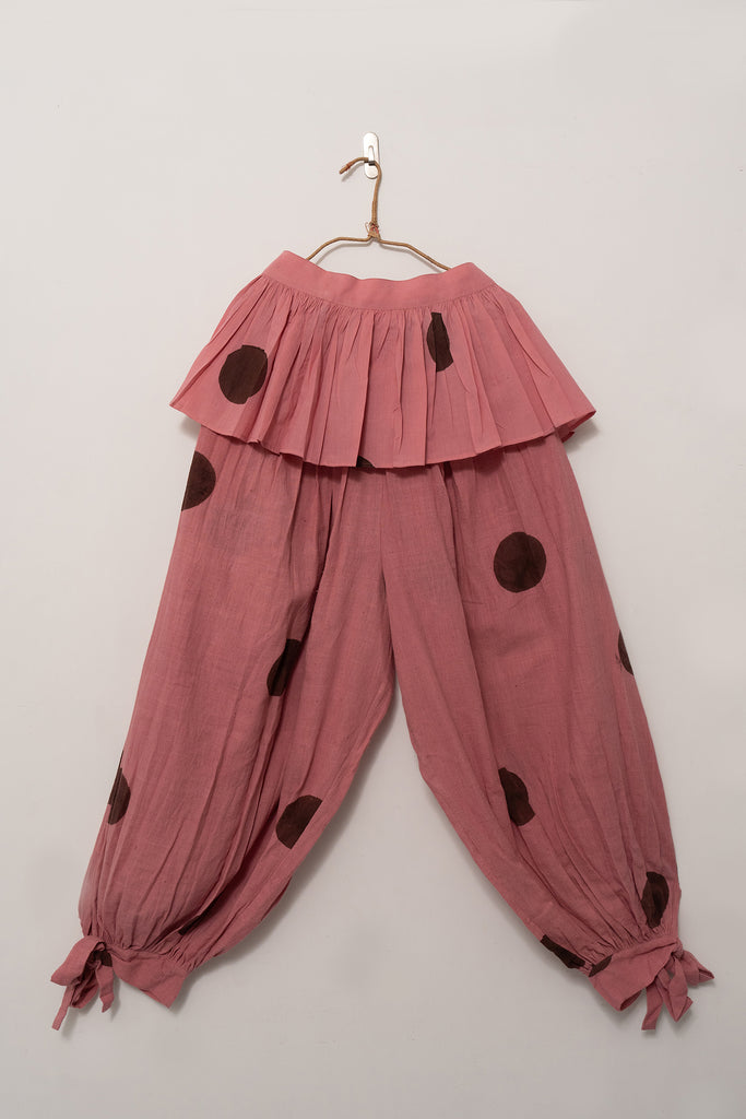 Designed in collaboration with Meredith Peck, this wrap skirt captures playful elegance through hand-blocked cocoa dots on rose-pink organic cotton. Crafted with azo-free dyes, it ties neatly at the waist, offering a flexible fit and a flared silhouette that transitions effortlessly from casual to festive.