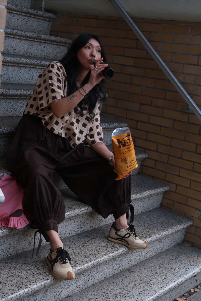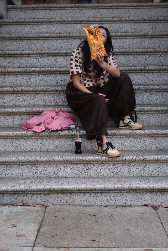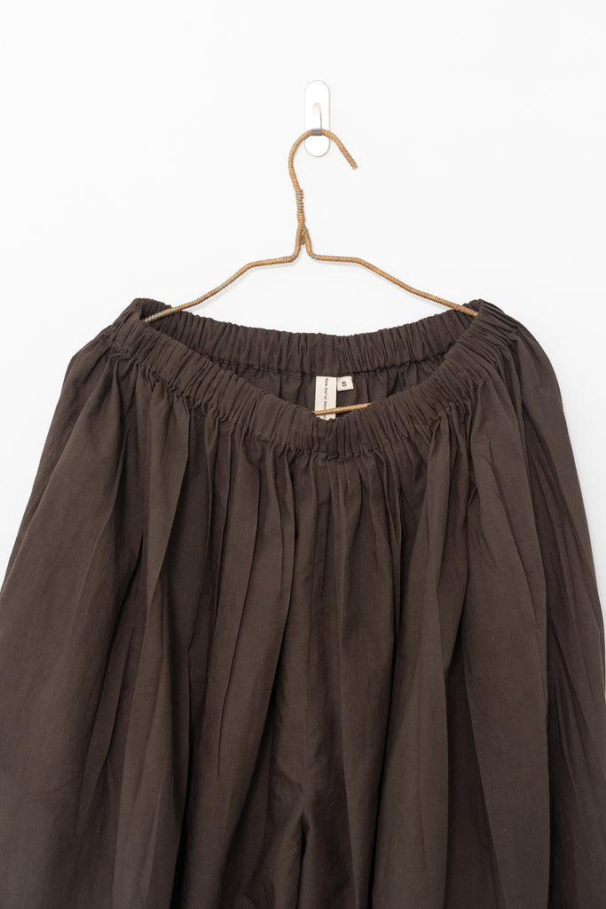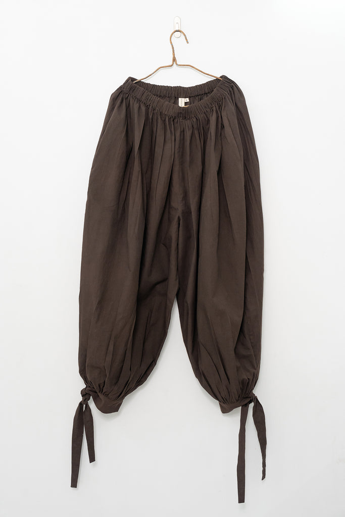 Designed in collaboration with Meredith Peck, these balloon pants redefine comfort with form. Made from organic cotton dyed with azo-free dyes, they feature an elastic waistband, gathered cuffs, and adjustable ties at the ankles. Effortless, flattering, and endlessly wearable.