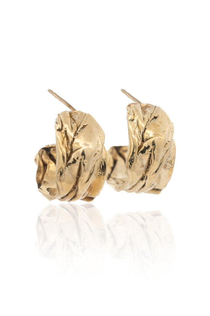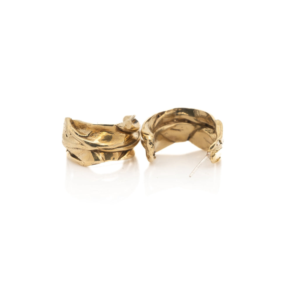 Introducing Eureka Chunky Gold Hoop Earrings, featuring textured and crumpled surface, these gold hoops are crafted from recycled brass through original wax carving.