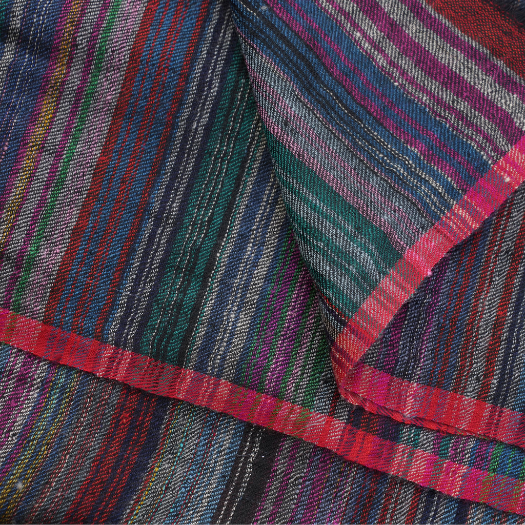 Envelop yourself in this hand woven pashmina shawl, a captivating blend of deep, elegant hues and vibrant vertical stripes. Lightweight yet warm, it's a timeless accessory perfect for adding an artistic and sophisticated touch to your style.