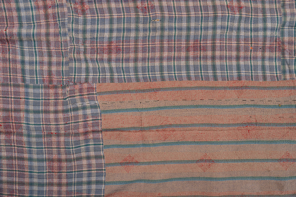 An heirloom in motion — stitched from vintage kantha quilts, this jacket carries delicate floral bands and soft hues of ivory, pink, and mint. Lightweight yet cozy, it’s perfect for fall layering and quiet winter mornings.