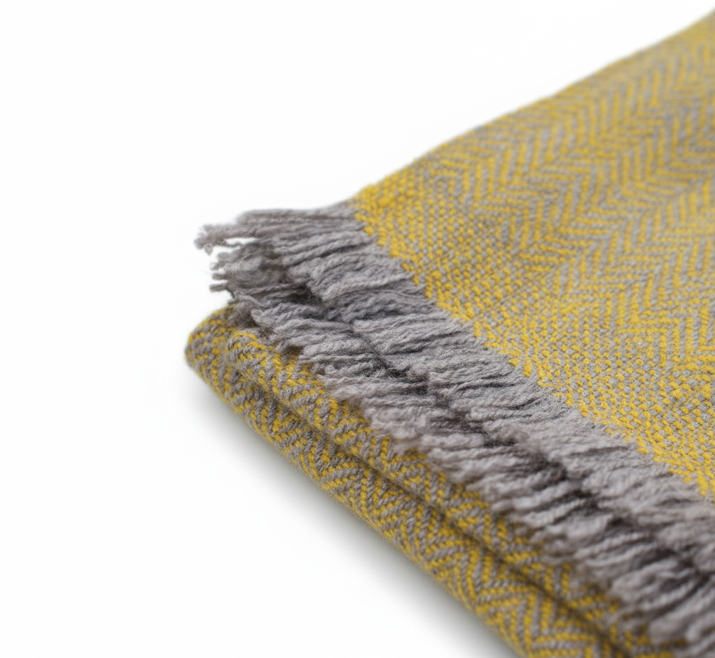 This pashmina muffler is a timeless and elegant accessory. It features a classic herringbone weave in a rich, earthy golden color. The intricate pattern provides subtle texture, while the delicate fringes add a refined finish. This lightweight and warm piece is perfect for adding a touch of sophisticated style to any look.